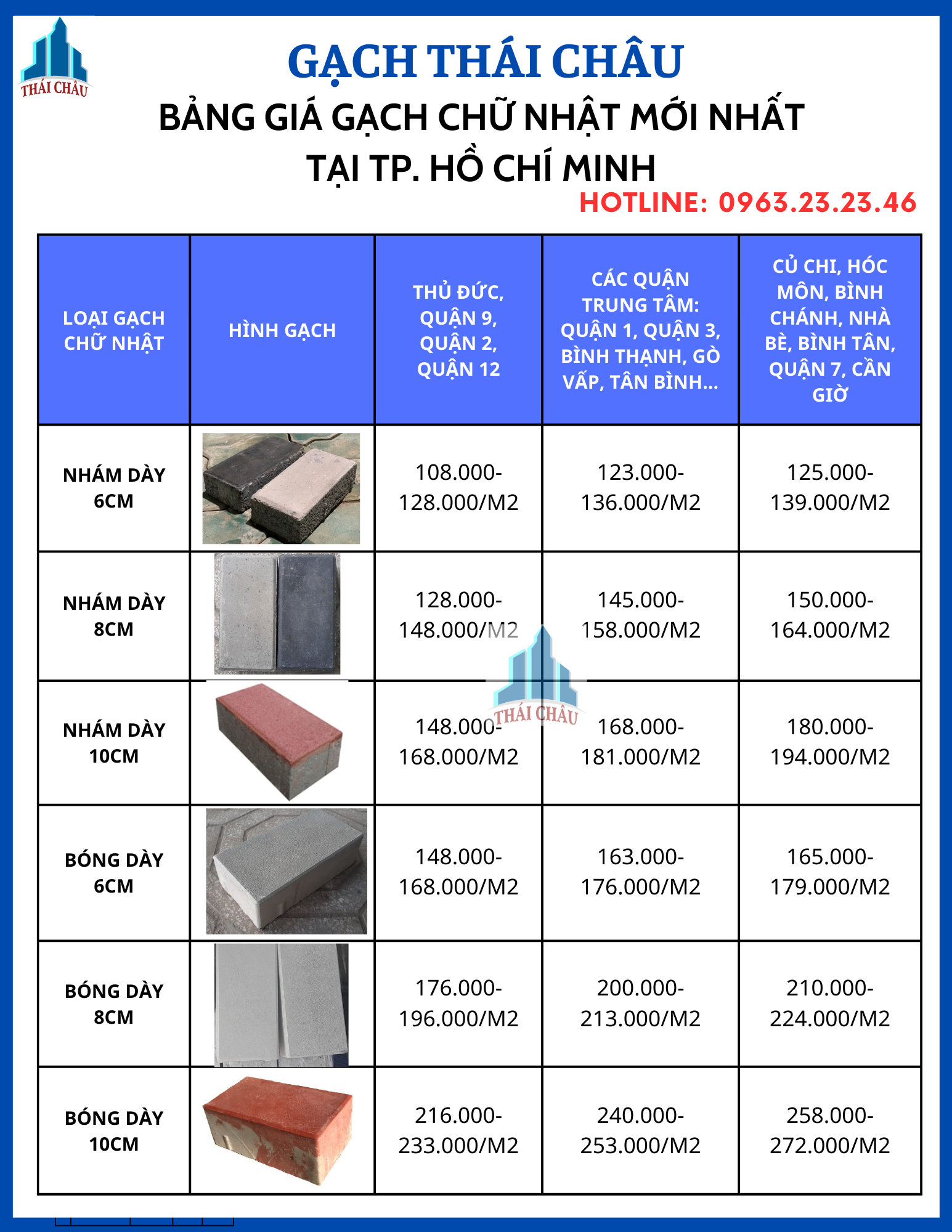 Bảng Giá Gạch Chữ Nhật Tại TP. Hồ Chí Minh
