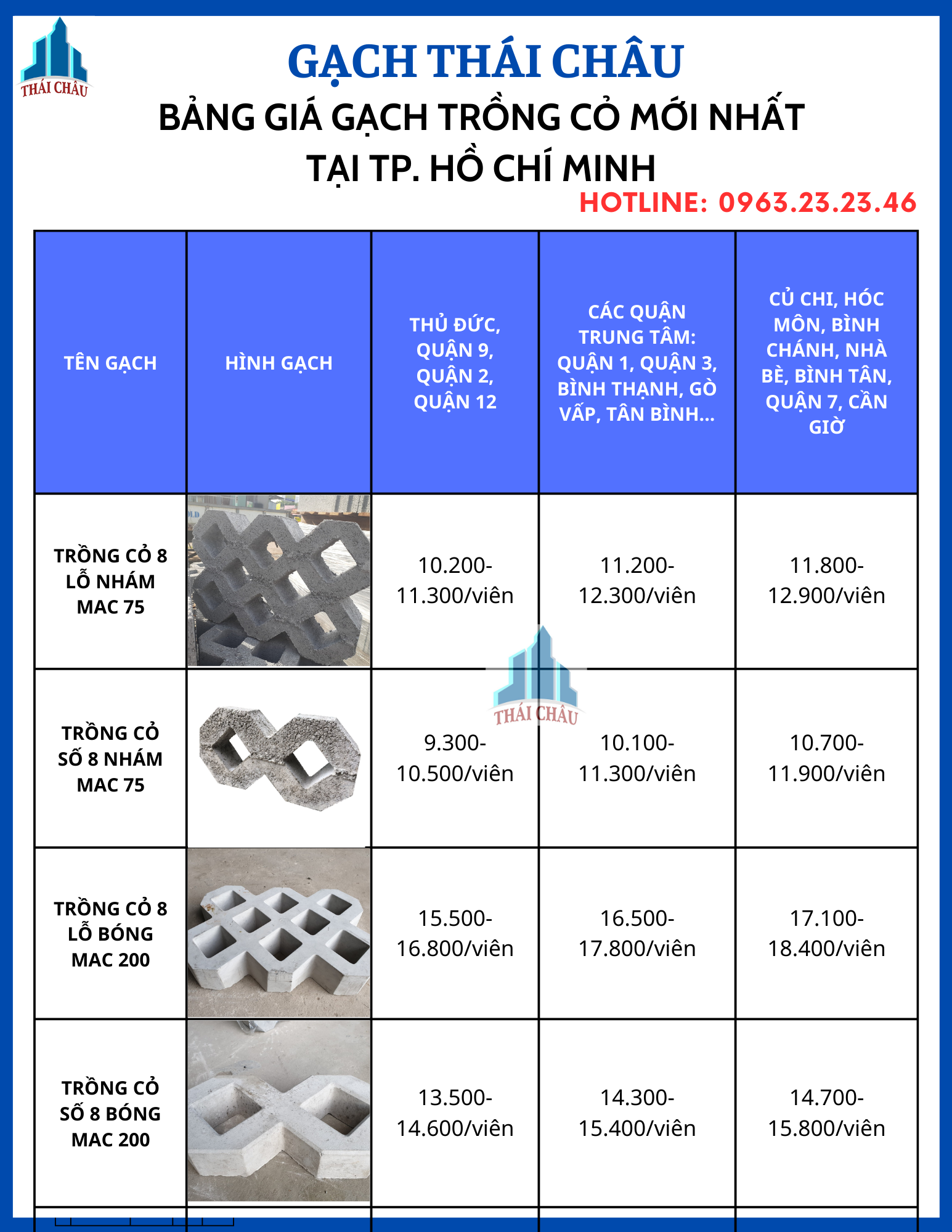 Bảng Giá Gạch Trồng Cỏ Tại TP. Hồ Chí Minh