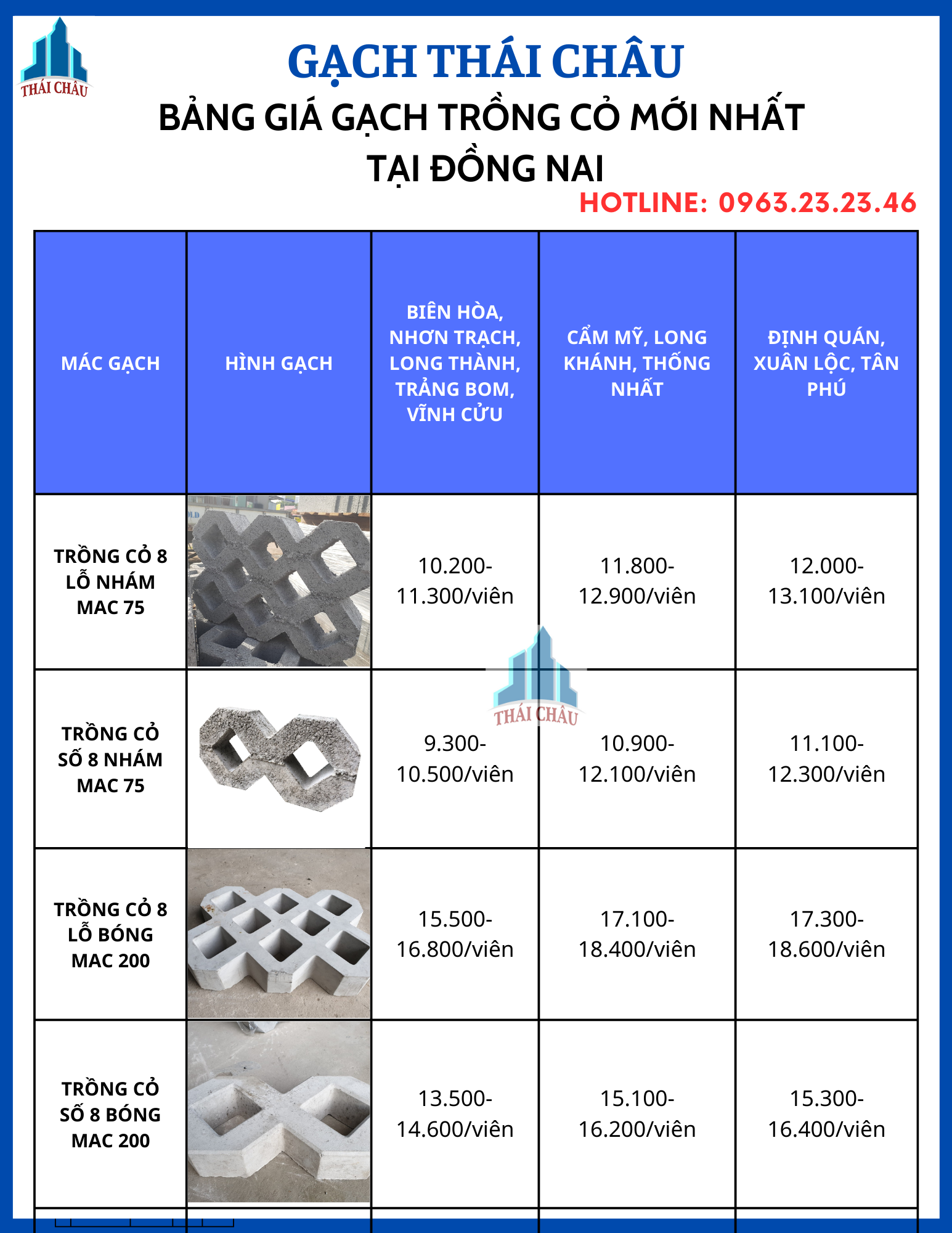 Bảng Giá Gạch Trồng Cỏ Tại Đồng Nai