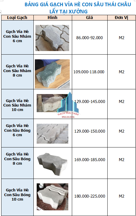 Giá gạch con sâu không chỉ phản ánh giá trị sản phẩm mà còn ảnh hưởng đến sự thành công của các dự án xây dựng. Trên đây là một số thông tin về giá gạch vỉa hè con sâu để quý khách hàng tham khảo và dự toán, tuy nhiên đây chỉ là thông tin tham khảo.