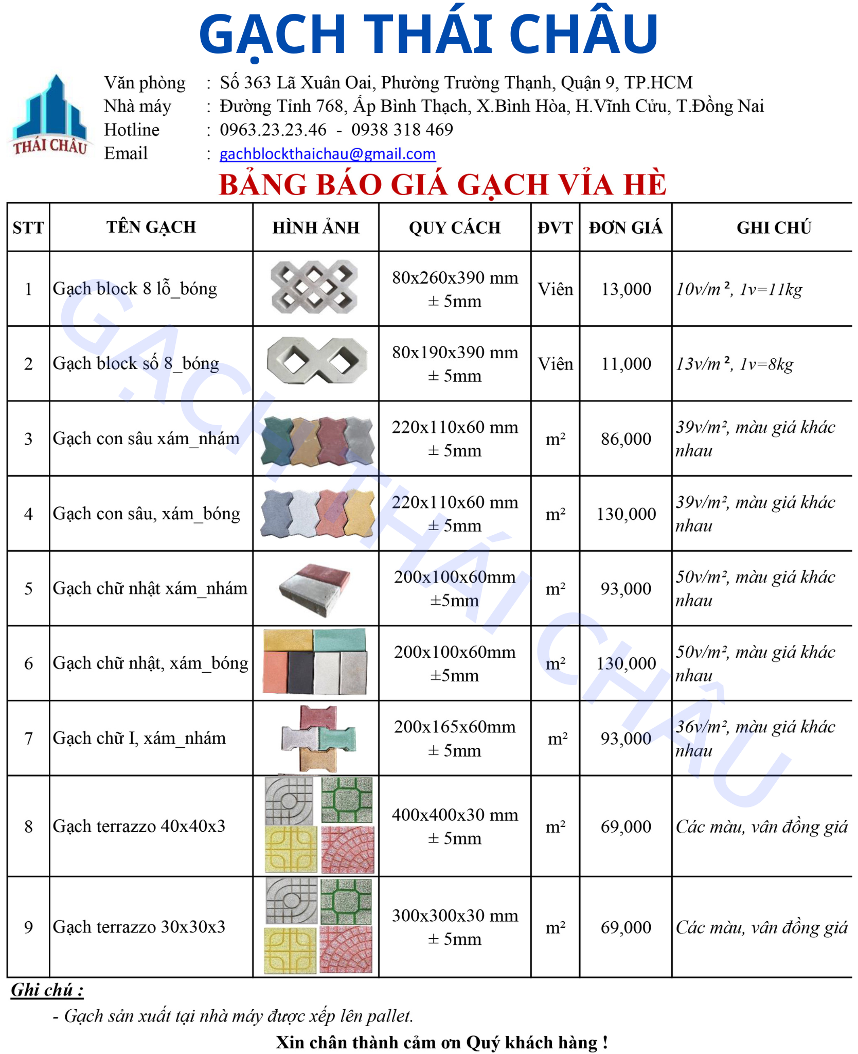 HÌNH ẢNH BÁO GIÁ WEB GẠCH VỈA HÈ THÁI CHÂU