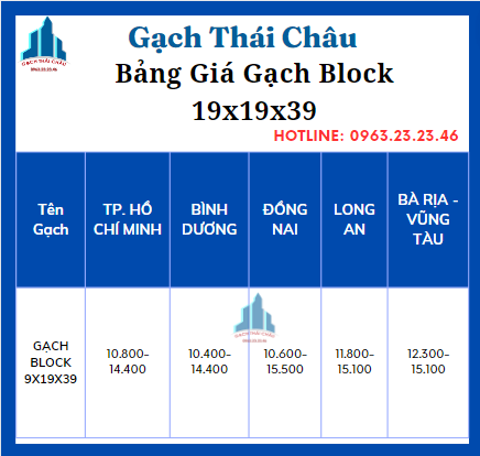 Gạch Thái Châu xin giới thiệu với quý khách hàng bảng giá gạch block 9x19x39 mới nhất tại các tỉnh TP.HCM, Bình Dương, Đồng Nai, Long An và Bà Rịa -Vũng Tàu: