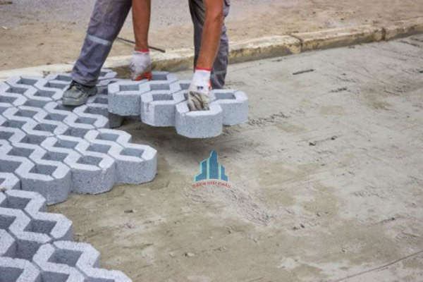 + Gạch Trồng Cỏ: được ứng dụng nhiều tại các bãi đỗ xe, cảnh quan sân vườn, công viên, tạo taluy cho các khu vực bờ kè,… Gạch trồng cỏ tạo ra không gian có điểm nhấn thú vị, do có tính thấm nước tốt nên cực kỳ phù hợp cho các khu vực có môi trường ẩm ướt hoặc có nguy cơ bị ngập úng. Gạch trồng cỏ giúp tăng độ phủ của không gian xanh tạo sự thoáng mát, duy trì tỷ lệ cỏ phủ xanh giúp hạn chế tình trạng xói mòn đất, thi công nhanh chóng, đơn giản.