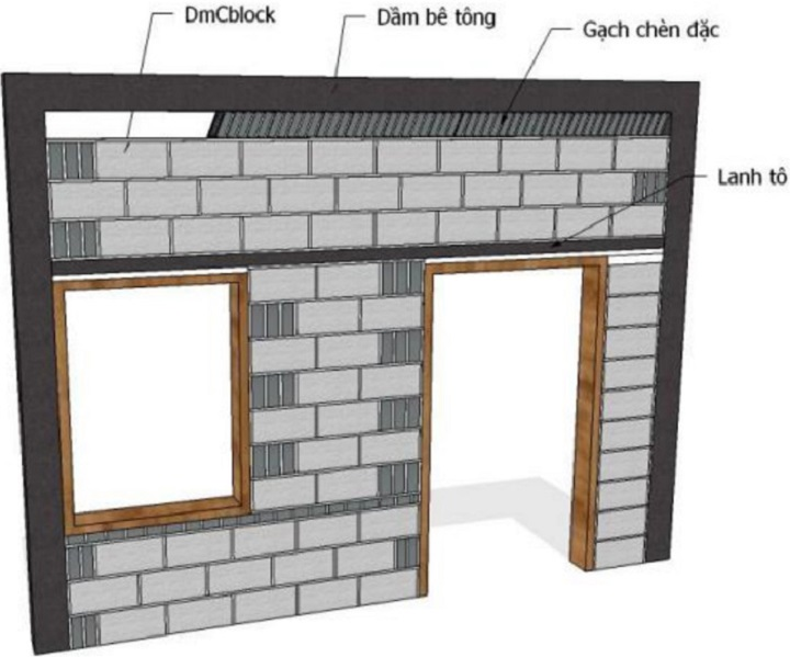 Bước 6: Giải pháp giúp xây tường gạch đúng kỹ thuật ở vị trí lỗ cửa
