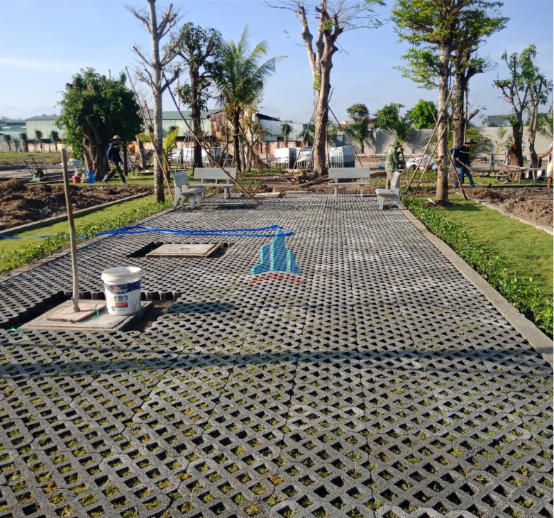 Công trình gạch trồng cỏ 8 lỗ loại bóng và nhám