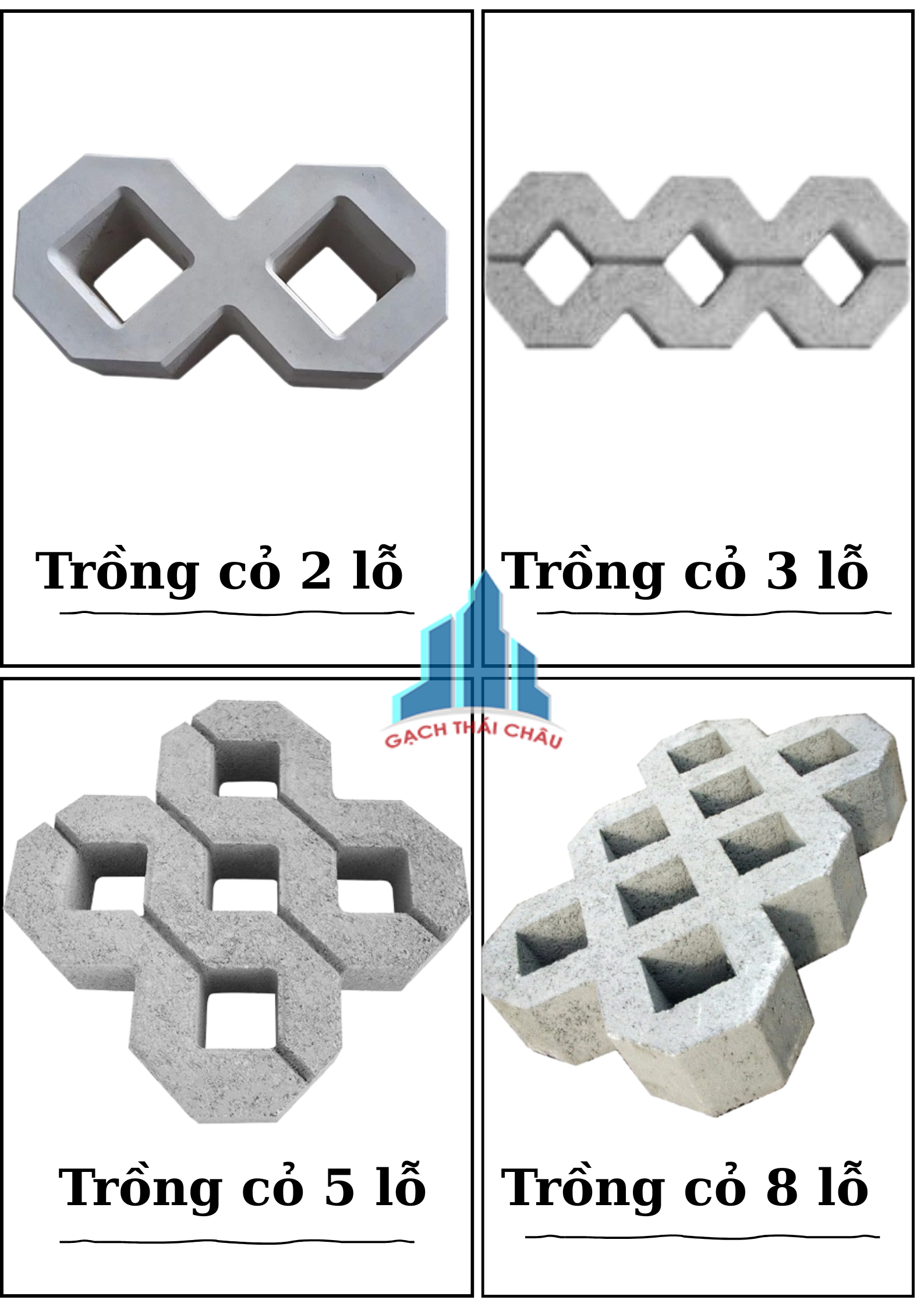 Gạch trồng cỏ là loại gạch bê tông đúc sẵn có nhiều ô trống trên bề mặt, cho phép cỏ hoặc cây xanh phát triển xen kẽ với các phần gạch cứng. Hiện nay, sản phẩm phổ biến nhất là gạch trồng cỏ 5 lỗ và gạch trồng cỏ 8 lỗ, đáp ứng đa dạng nhu cầu lát nền sân vườn, bãi xe hay khuôn viên công cộng.