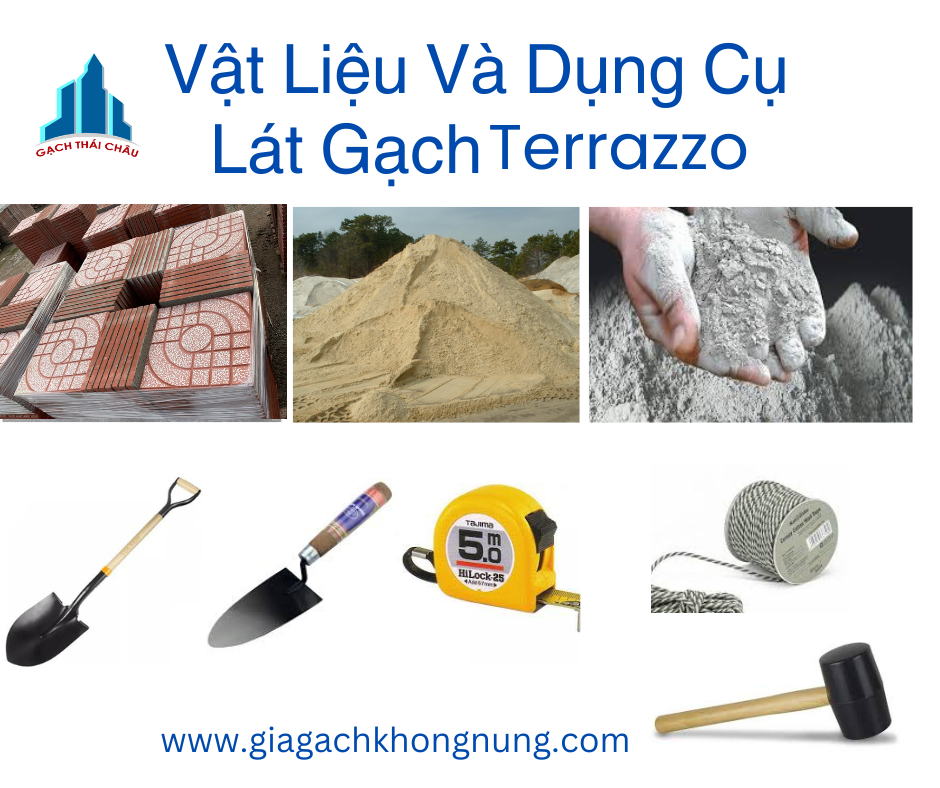 Sau khi chuẩn bị xong gạch terrazzo, bước tiếp theo bạn cần phải mua cát và xi măng để tạo lớp nền và hồ dầu. Ngoài ra, bạn cần phải chuẩn bị thêm các dụng cụ như xẻng, bay, thước đo, dây dù, búa cao su,…Đối với các công trình cần lát diện tích lớn thì nên trang bị thêm máy trộn bê tông và máy đầm nền.
