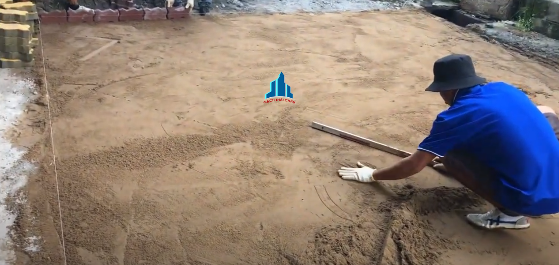 Lớp nền là yếu tố tiên quyết, quyết định độ bền và sự ổn định của bề mặt lát gạch. Bạn cần phải chuẩn bị bề mặt lát nên thật kỹ lưỡng, nền phải đầm thật chặt, bằng phẳng. Đầu tiên, bạn sẽ bạn trộn xi măng, đá mi và cát, tiến hành trải đều lên khu vực cần lát gạch. Nếu khu vực lát rộng, bạn nên sử dụng máy trộn bê tông để tiết kiệm thời gian và công sức. Sau đó, bạn sẽ sử dụng cát làm nguyên liệu chính để tạo nên lớp nền, tiến hành rải cát và đầm kỹ cho nền thật chắc, tạo khả năng chịu lực tốt. Ở bước này, nếu công trình có điều kiện thì sử dụng máy đầm nền để đạt được kết quả tốt nhất.