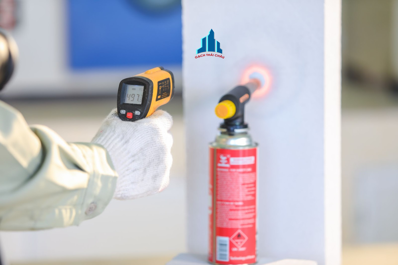 - Gạch nhẹ aac còn có khả năng chống cháy đặc biệt, chịu được nhiệt độ lên đến 1600 độ C, trong trường hợp xảy ra hỏa hoạn thì gạch có thể bảo vệ kết cấu căn nhà từ 4 đến 6 giờ đồng hồ.