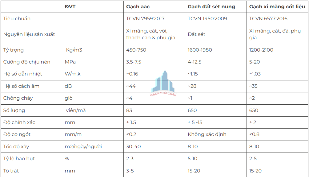 So sánh gạch bê tông nhẹ và vật liệu khác: