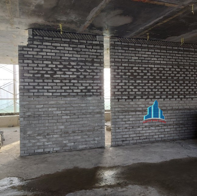Tại mối nối giữa tường và dầm sử dụng gạch block đinh