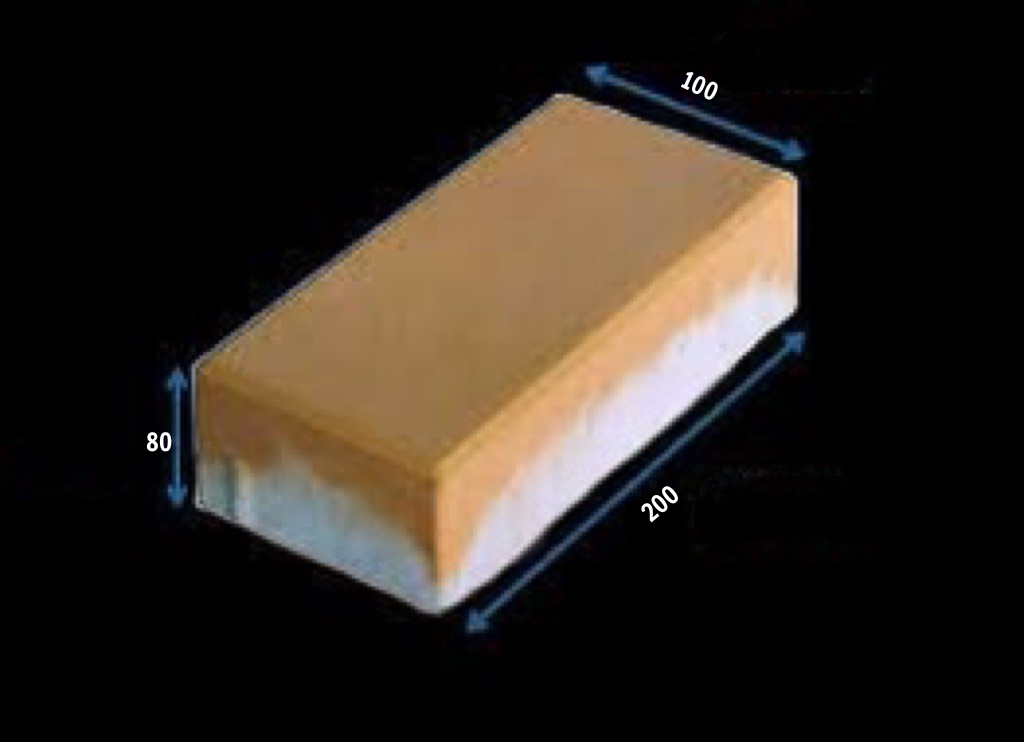 Gạch chữ nhật có thông số kỹ thuật cụ thể như sau: Dài 20 cm, Rộng 10cm, độ dầy gạch có 3 kích thước chính là dầy 6cm, dầy 8cm và dầy 10cm. Với kích thước như trên trọng lượng mỗi viên gạch chữ nhật dầy 6cm khoảng 3.0 kg, gạch chữ nhật dày 8cm khối lượng khoảng 4.0 kg và dầy 10cm có trọng lượng là 5.2kg. Một mét vuông gạch chữ nhật có định mức rất rõ ràng là 50 viên. Với kích thước này sẽ giúp việc xếp lát gạch trở nên dễ dàng, nhanh chóng và giúp gia tăng tính ổn định và độ bền của công trình xây dựng.