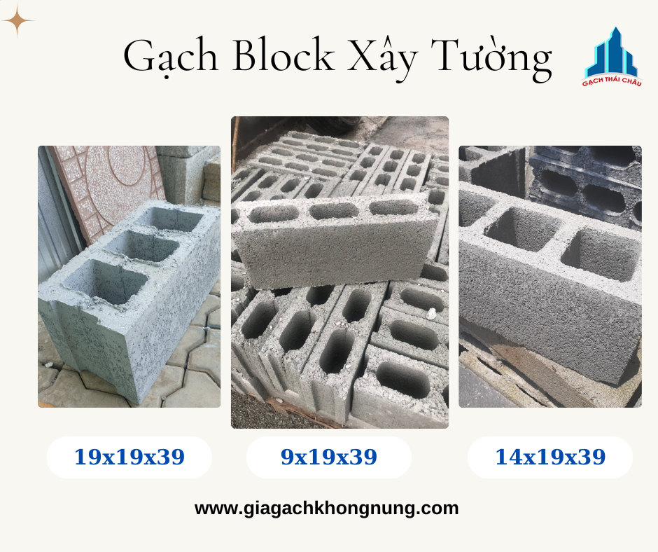 Hiện nay, trên thị trường có rất nhiều loại gạch block có kích thước khác nhau, mỗi loại phù hợp với từng vị trí công trình khác nhau, việc chọn đúng loại gạch block khi xây tường rất quan trọng, ảnh hưởng trực tiếp đến chất lượng và độ bền của tường gạch. Thông thường, đối với tường 10 sẽ sử dụng gạch block kích thước 9x19x39, tường 15 sẽ sử dụng gạch block 14x19x39, đối với tường 20 sẽ sử dụng gạch block kích thước 19x19x39. Hoặc cũng có nhiều công trình chọn sử dụng gạch block 4 lỗ, gạch block đặc, gạch block thẻ để xây tường vì có kích thước tương tự như gạch nung truyền thống, quá trình xây không bị lạ lẫm nhưng vẫn đảm bảo chất lượng cao.