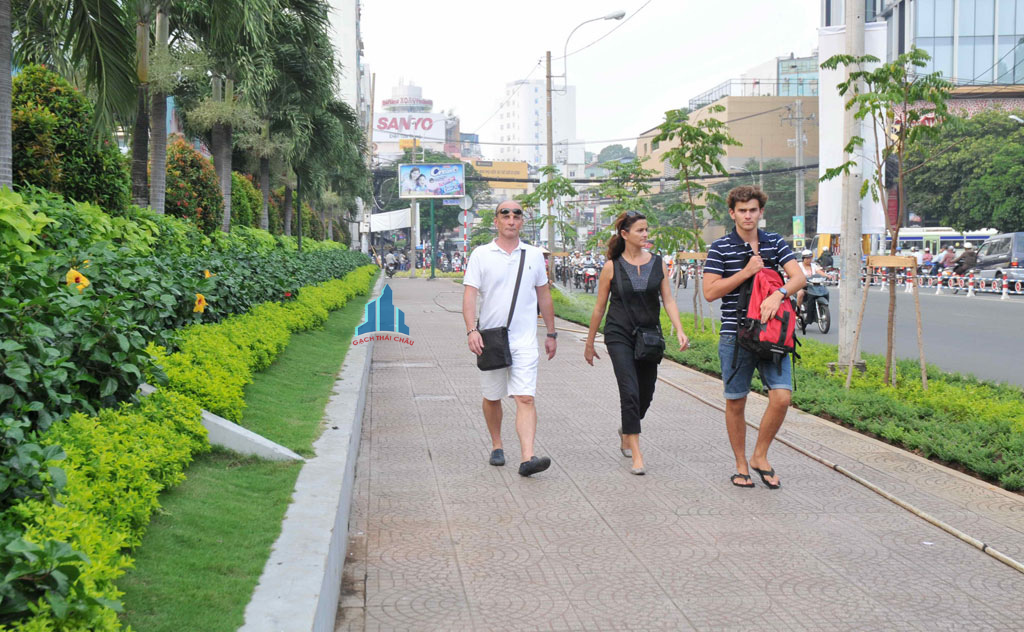 + Mật độ di chuyển cao: người đi bộ, xe đẩy, phương tiện dịch vụ thường xuyên qua lại.